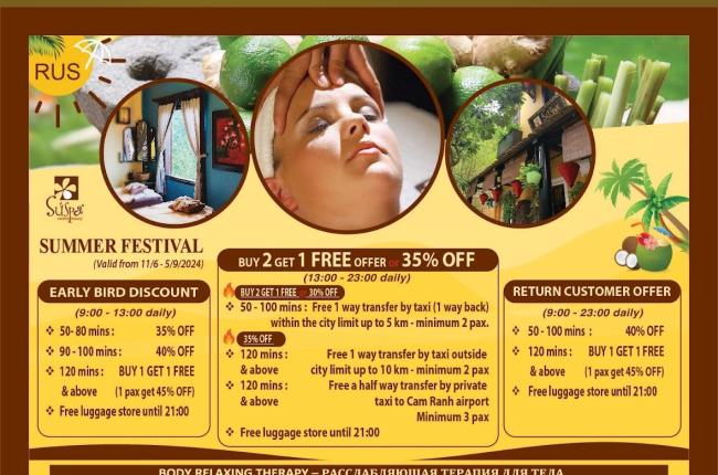 (Body massage, facial, body wrap & herbal bath/ Or body scrub, body massage, foot & herbal bath (complimentary a bottle of champagne))