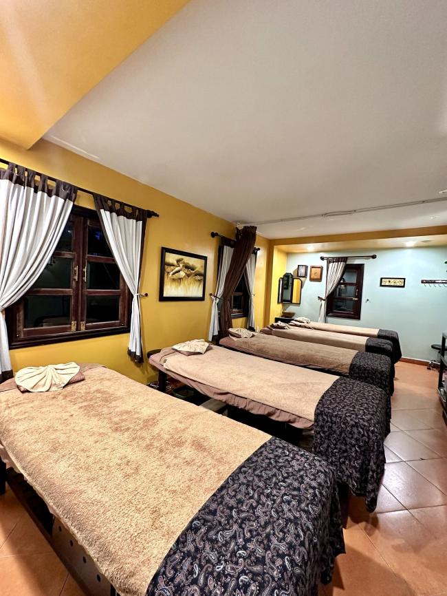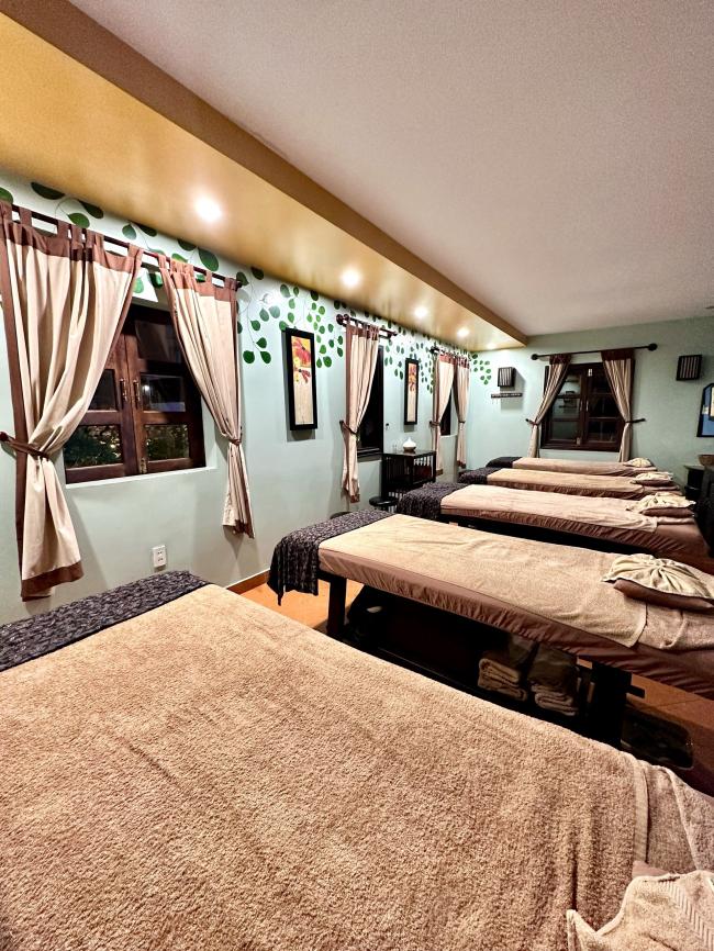 - THAI MASSAGE: Kĩ thuật viên sử dụng toàn bộ cơ thể để kéo căng và tác động lên các cơ và khớp trên cơ thể , kết hợp cùng với các loại dầu thiên nhiên mang đến cảm giác thư thái, loại bỏ căng thẳng và trị liệu hiệu quả.